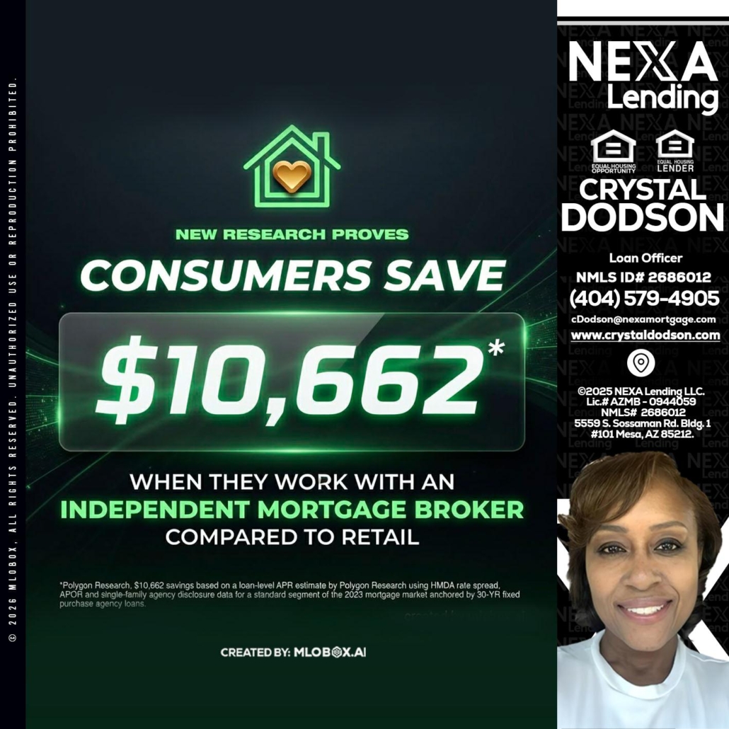Hi, my name is Crystal Dodson. I’m a Loan Officer with NEXA Lending LLC., offering personalized mortgage solutions, fast customized quotes, great rates and service with integrity.