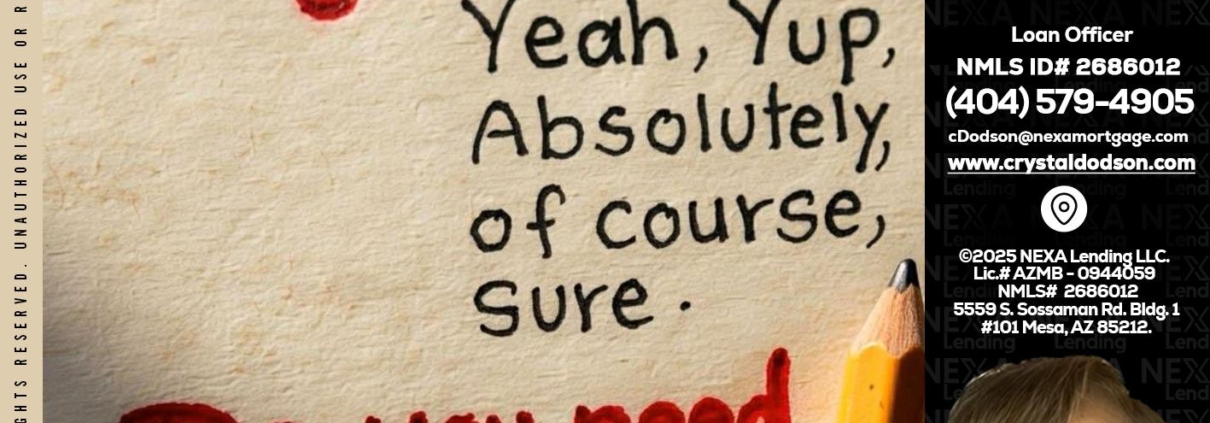 Hi, my name is Crystal Dodson. I’m a Loan Officer with NEXA Lending LLC., offering personalized mortgage solutions, fast customized quotes, great rates and service with integrity.