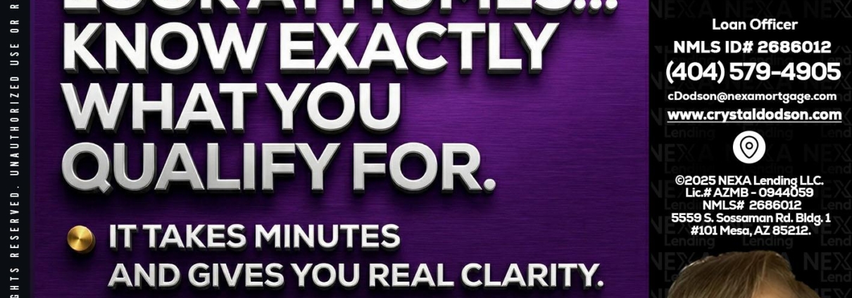 Hi, my name is Crystal Dodson. I’m a Loan Officer with NEXA Lending LLC., offering personalized mortgage solutions, fast customized quotes, great rates and service with integrity.