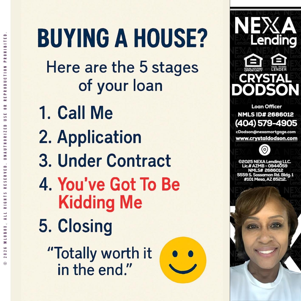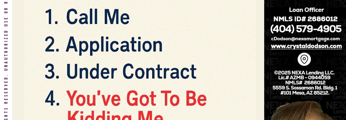 Hi, my name is Crystal Dodson. I’m a Loan Officer with NEXA Mortgage LLC., offering personalized mortgage solutions, fast customized quotes, great rates and service with integrity.
