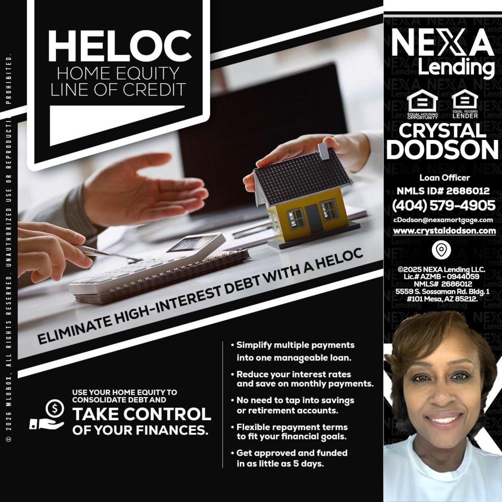 Hi, my name is Crystal Dodson. I’m a Loan Officer with NEXA Mortgage LLC., offering personalized mortgage solutions, fast customized quotes, great rates and service with integrity.