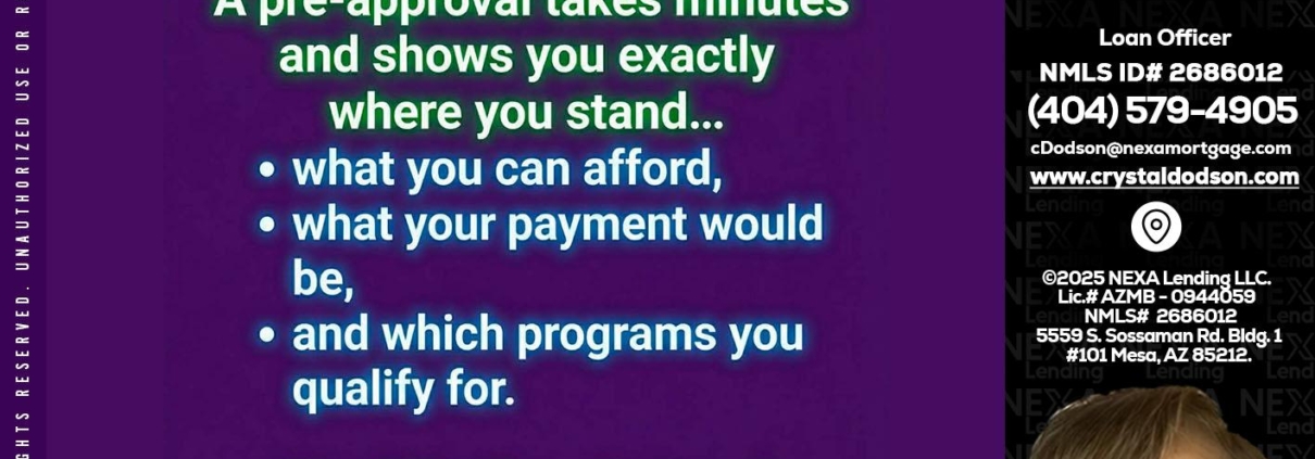Hi, my name is Crystal Dodson. I’m a Loan Officer with NEXA Lending LLC., offering personalized mortgage solutions, fast customized quotes, great rates and service with integrity.