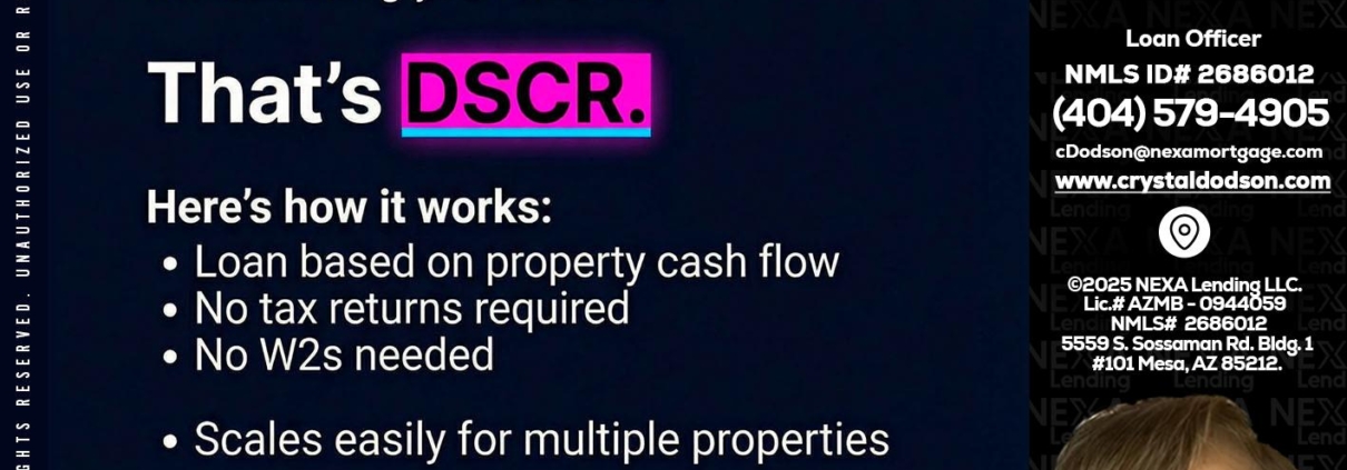 Hi, my name is Crystal Dodson. I’m a Loan Officer with NEXA Lending LLC., offering personalized mortgage solutions, fast customized quotes, great rates and service with integrity.