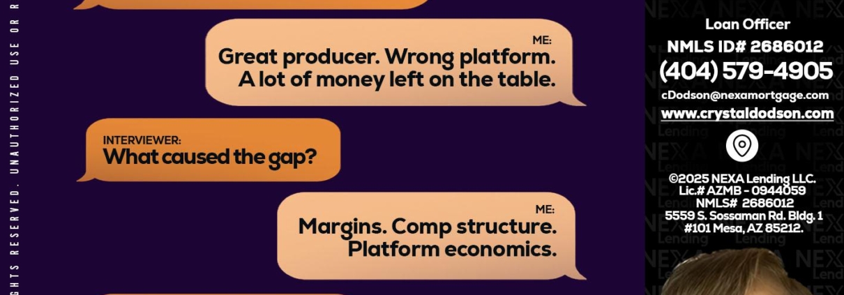 Hi, my name is Crystal Dodson. I’m a Loan Officer with NEXA Mortgage LLC., offering personalized mortgage solutions, fast customized quotes, great rates and service with integrity.