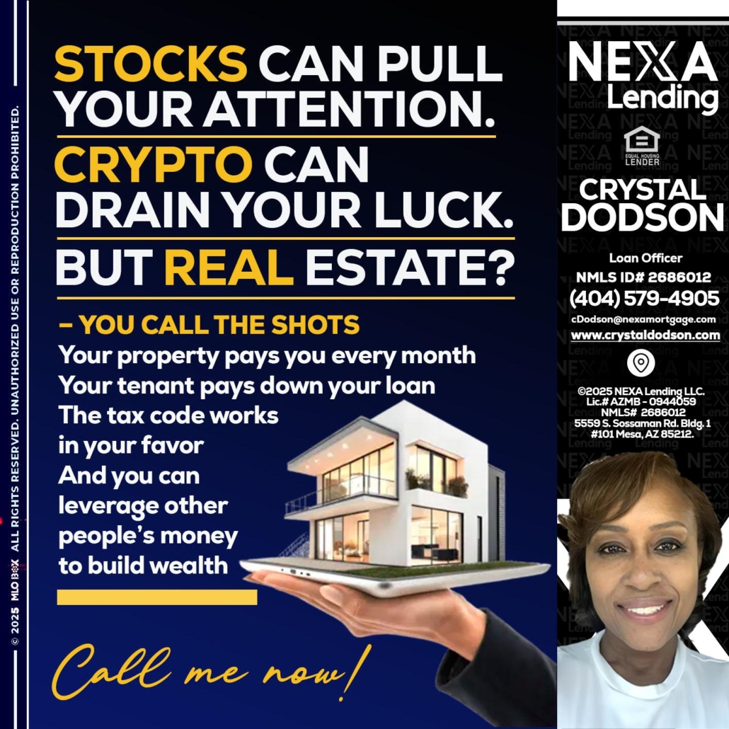 Hi, my name is Crystal Dodson. I’m a Loan Officer with NEXA Mortgage LLC., offering personalized mortgage solutions, fast customized quotes, great rates and service with integrity.