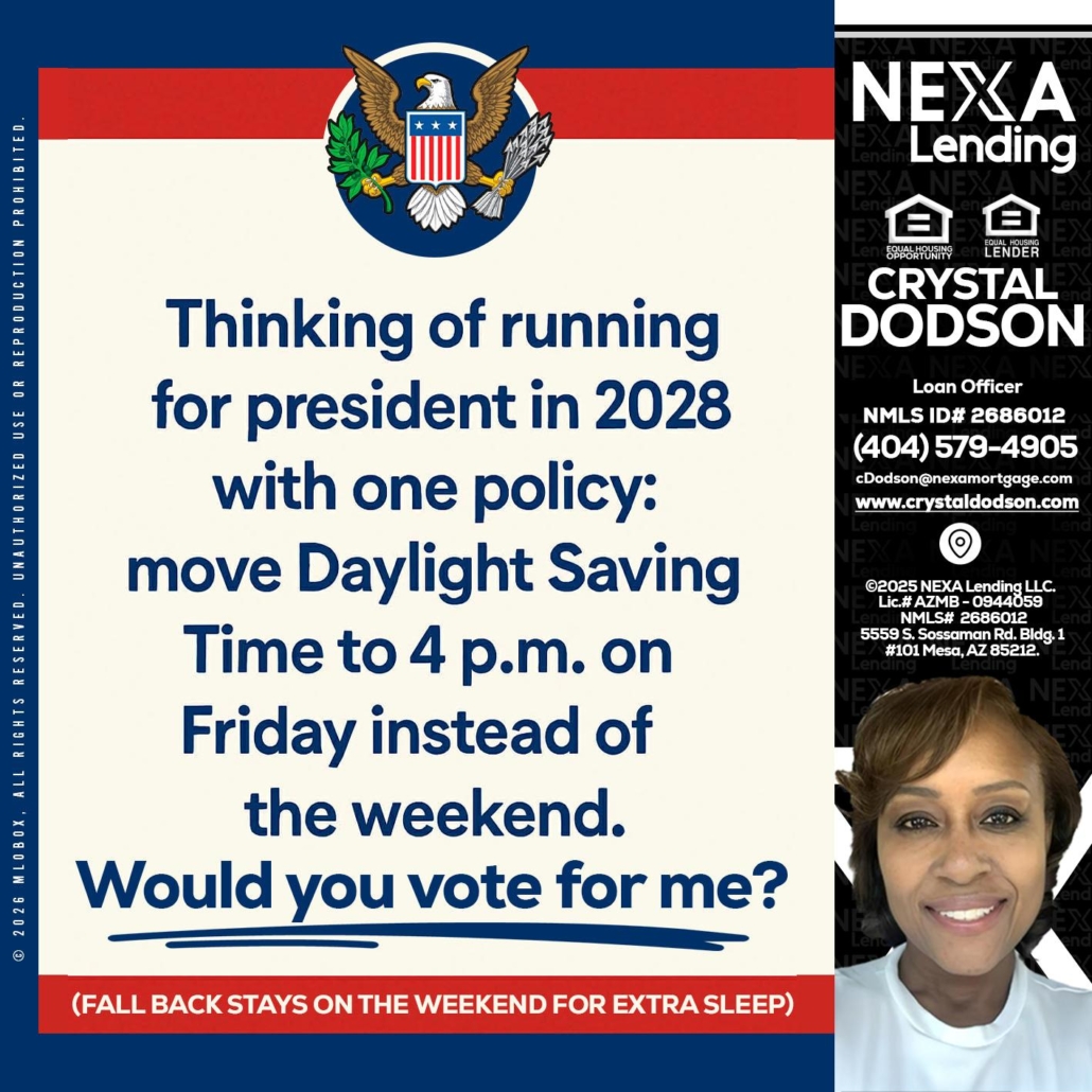 THINKING OF RUNING - Crystal Dodson -Loan OfficerHi, my name is Crystal Dodson. I’m a Loan Officer with NEXA Mortgage LLC., offering personalized mortgage solutions, fast customized quotes, great rates and service with integrity.
